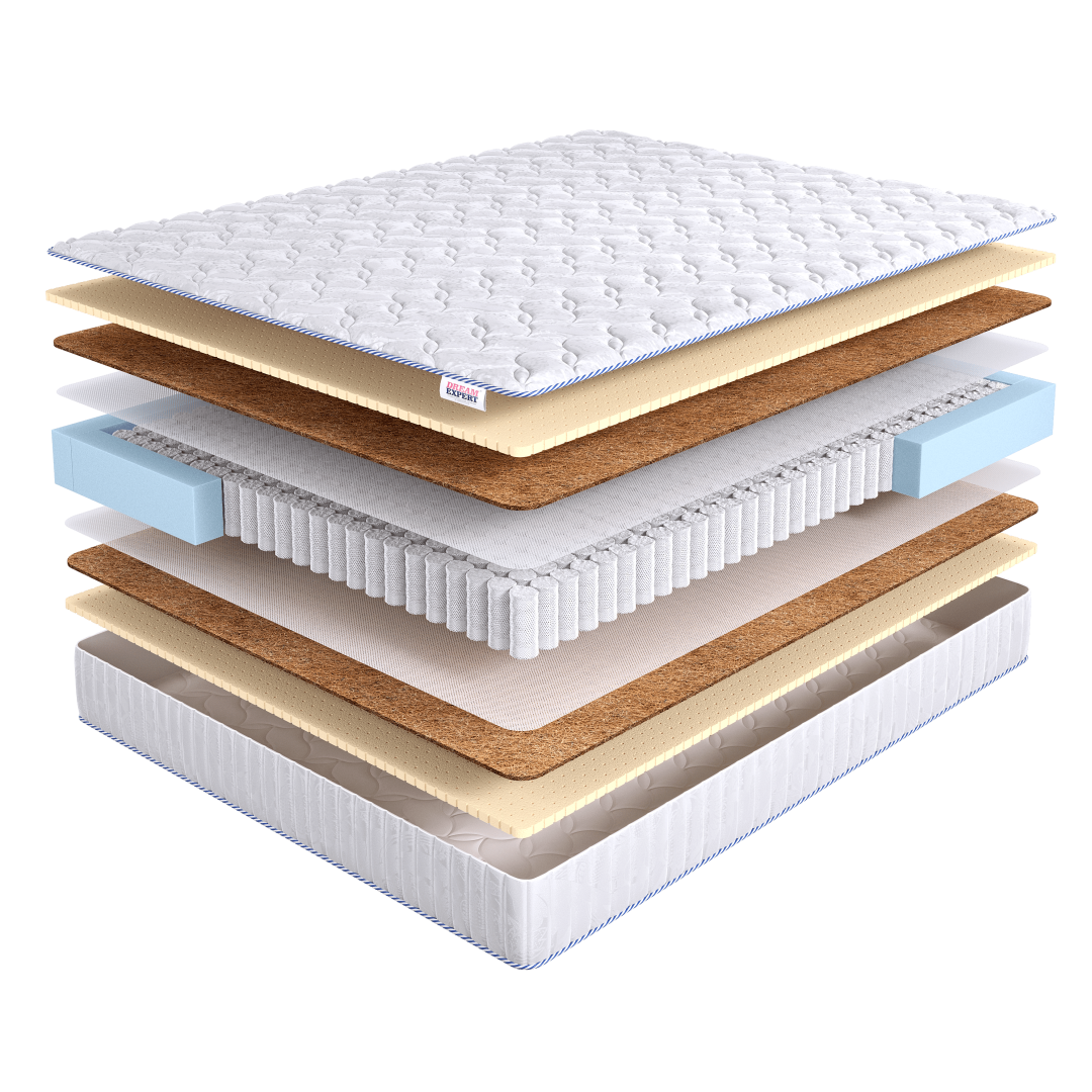 В основе матраса лежит независимый пружинный блок, который обеспечивает эффективную поддержку тела во время сна и максимальный комфорт. С обеих сторон расположены натуральный латекс и латексированная кокосовая койра. Их сочетание придает матрасу среднюю жесткость и позволяет равномерно распределять нагрузку на позвоночник.