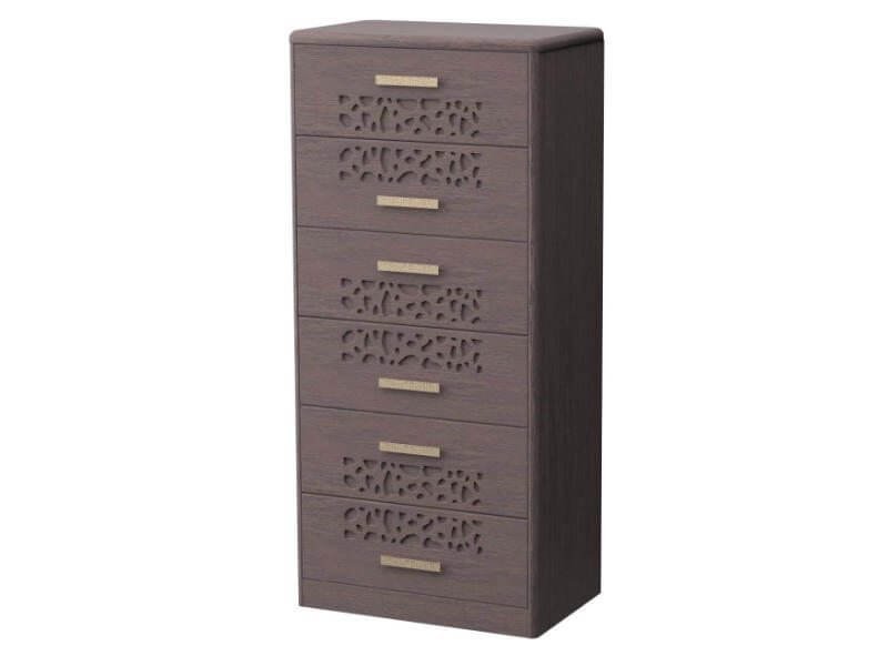 На выбор предлагаются актуальные цвета древесины, в том числе оттенки орех и груша. Купить изделия возможно в стандартной и индивидуальной комплектации. Под заказ изготавливаются комоды с другими параметрами по высоте, с дополнительным ящичком и автодоводчиками закрытия, что несущественно сказывается на цене.