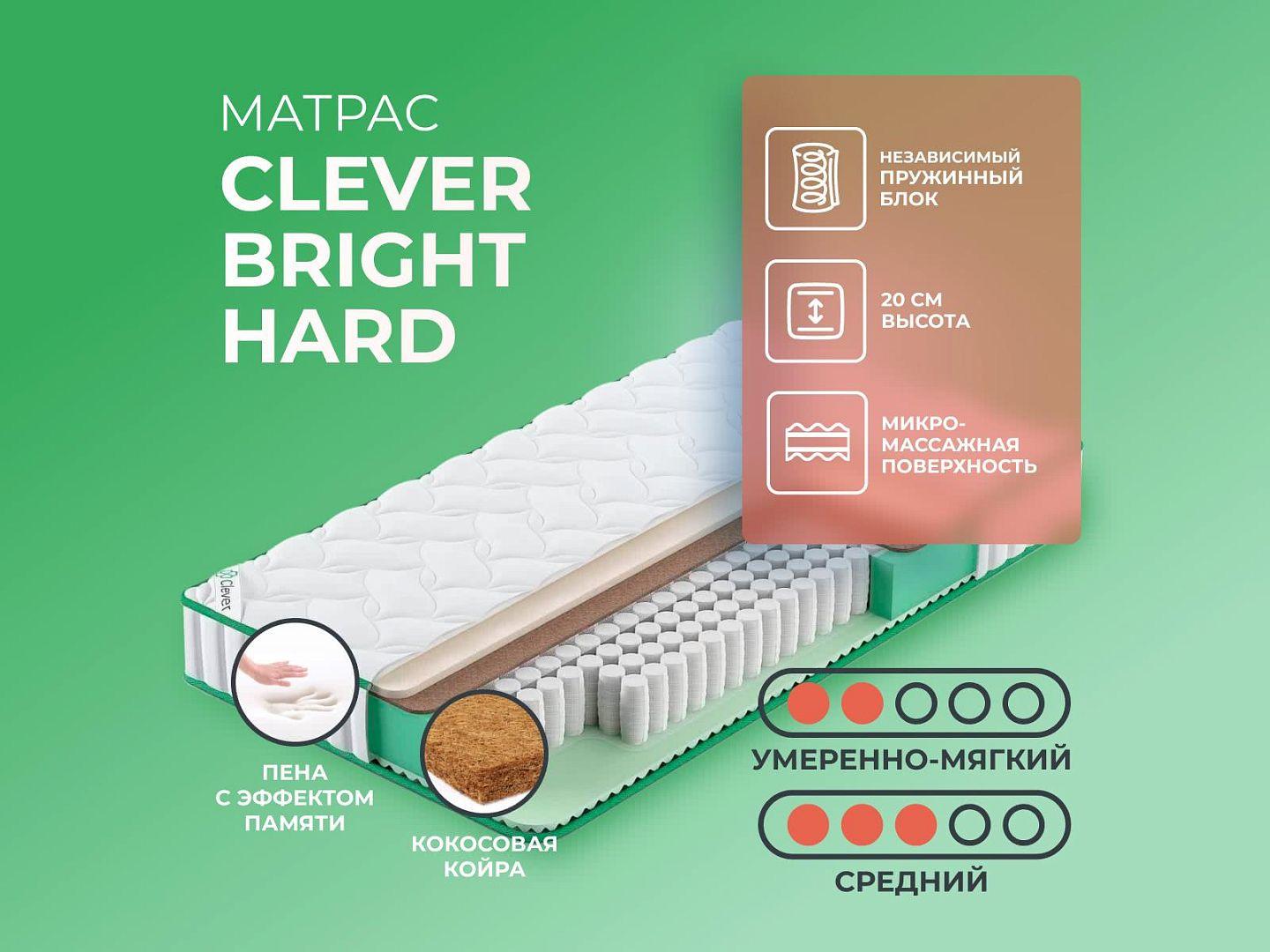 Фабрика Clever получила заслуженную репутацию, благодаря применению новых технологий и безупречному соблюдению стандартов качества. Clever Bright Hard — образец продукта с лучшими характеристиками и доступной ценой, матрас создан из дышащих тканей, с эффектом вентиляции.