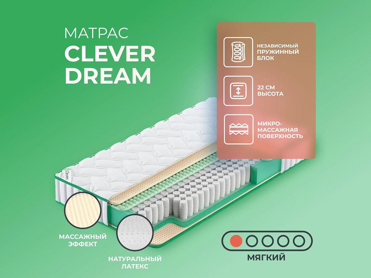 Интернет-магазин Dream-Expert.ru представляет матрас Clever Dream 160x200 производства фабрики Clever. Купить данную модель — значит обеспечить себе здоровый позвоночник и комфортный сон на долгие годы.