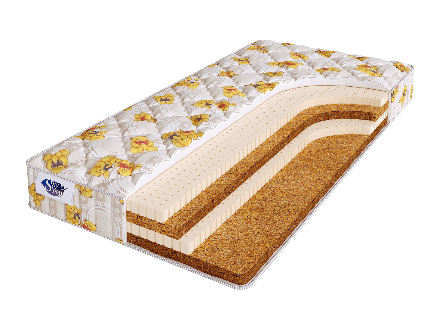 Беспружинный детский матрас KIDDY Mix выполнен из экологичных материалов и обладает разным уровнем жесткости сторон. Чередование слоев натурального латекса и кокосовой койры позволяет создать оптимальный уровень анатомической поддержки детского позвоночника во время отдыха. Сторона, выполненная из кокосовой койры обеспечивает жесткую поддержку спины, что положительно сказывается на правильном формировании детской осанки, а натуральный латекс смягчает поверхность и делает сон на матрасе невероятно комфортным. Оба материала отлично вентилируются, что предотвращает скопление влаги и пыли в матрасе и позволяет поддерживать микроклимат спального места в идеальном состоянии.