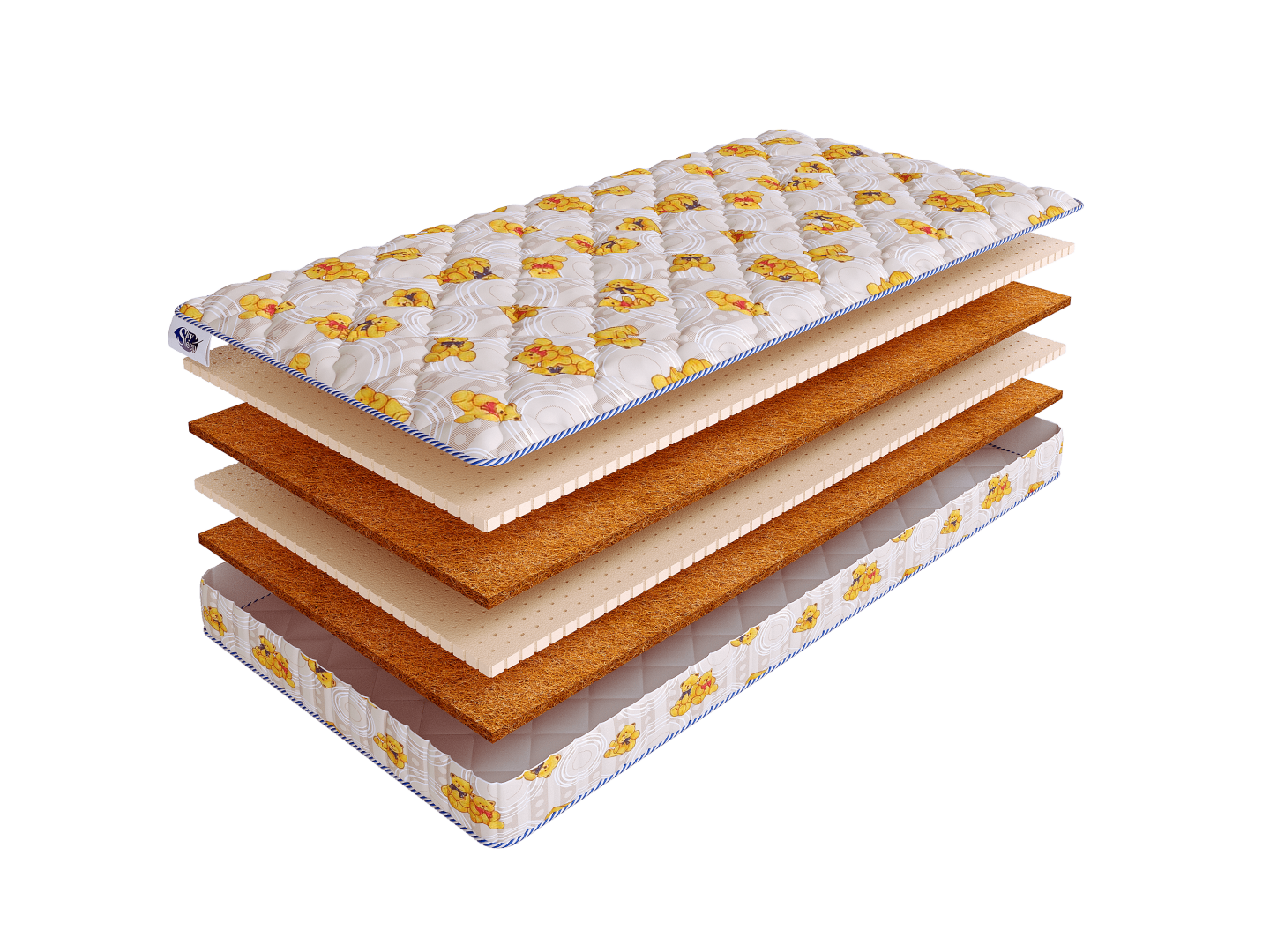 Беспружинный детский матрас KIDDY Mix Slim выполнен из экологичных материалов и обладает разным уровнем жесткости сторон. Чередование слоев натурального латекса и кокосовой койры позволяет создать оптимальный уровень анатомической поддержки детского позвоночника во время отдыха. Сторона, выполненная из кокосовой койры обеспечивает жесткую поддержку спины, что положительно сказывается на правильном формировании детской осанки, а натуральный латекс смягчает поверхность и делает сон на матрасе невероятно комфортным. Оба материала отлично вентилируются, что предотвращает скопление влаги и пыли в матрасе и позволяет поддерживать микроклимат спального места в идеальном состоянии.