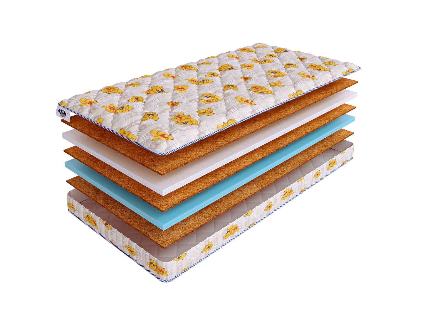 Оба материала свободно пропускают воздух, что положительно сказывается на гигиене спального места малыша. Кокосовая койра от природы обладает бактерицидными свойствами и препятствует появлению вредных микроорганизмов внутри матраса.