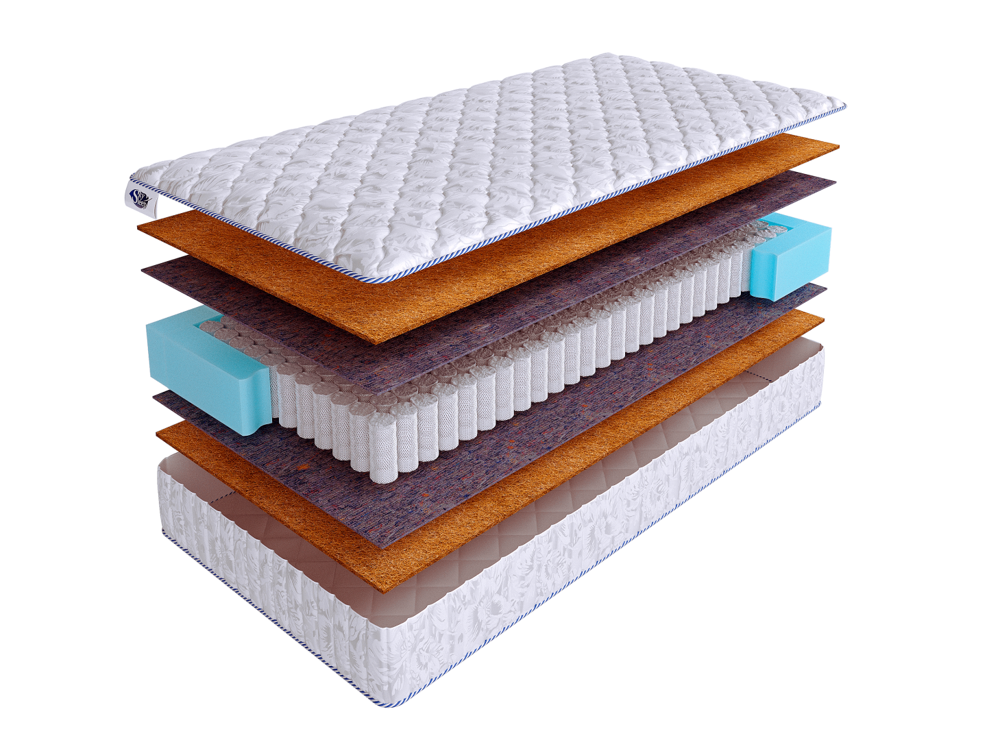 Это материал, обладающий такими качествами, как прочность, упругость и отличная воздухопроницаемость. Слои кокоса толщиной 1 см расположены по обеим сторонам модели и обеспечивают надежную ортопедическую поддержку для всего тела.