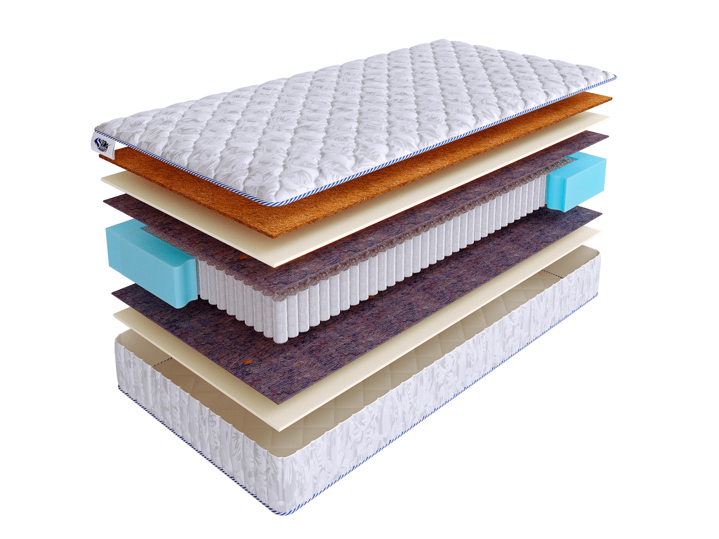 Чехол матраса выполнен из хлопкового жаккарда, простеганного на 100 г. синтепона.